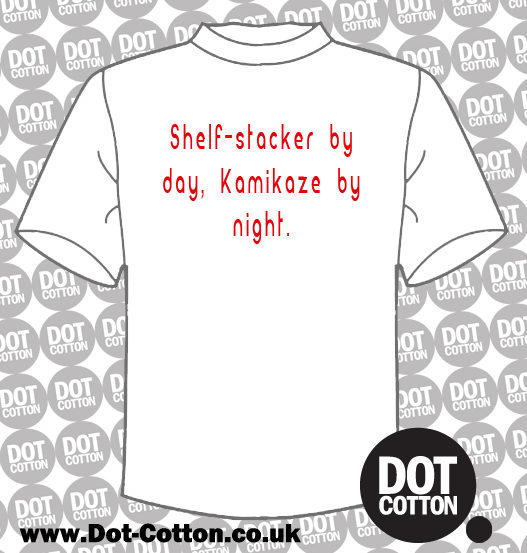 Shelf-stacker by day. Kamikazr by night T-shirt Published January 23, 2014 at 527 × 553 in Shelf-stacker by day. Kamikazr by night T-shirt ← Previous Next →