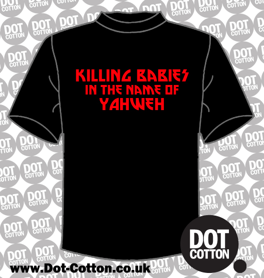 Killing Babies in the Name of Yahweh T-shirt Published July 6, 2015 at 527 × 553 in Killing Babies in the Name of Yahweh T-shirt ← Previous Next →