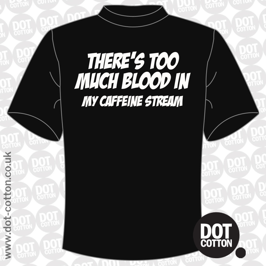 Help… Too much blood in my precious caffeine Stream! Can you relate? This T-shirt is available in your choice of T-Shirt Colour and Print Colour.