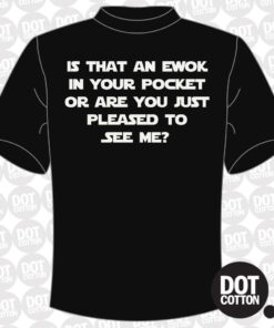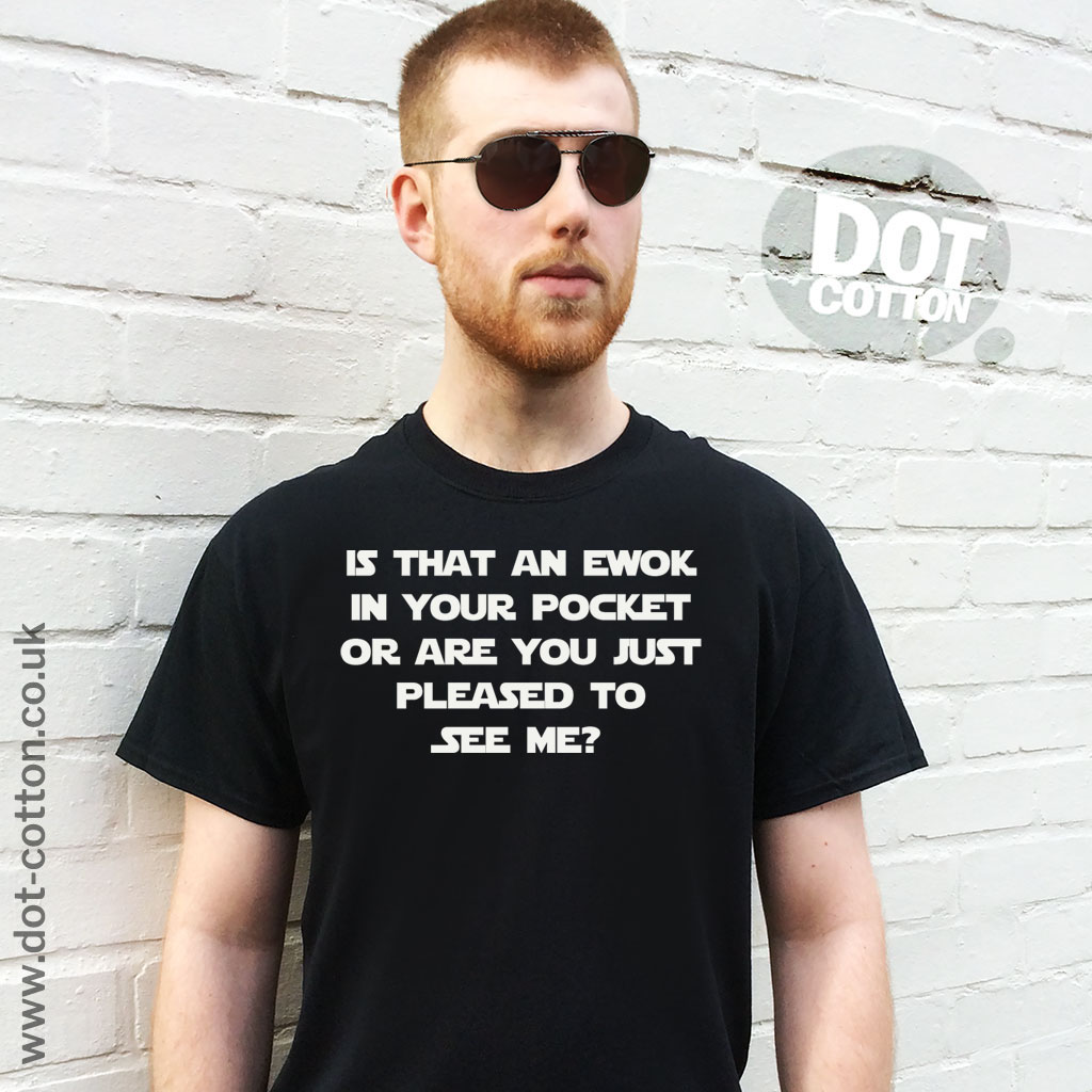 Is that an Ewok in your pocket or are you just pleased to see me? This T-shirt is available in your choice of T-Shirt Colour and Print Colour.