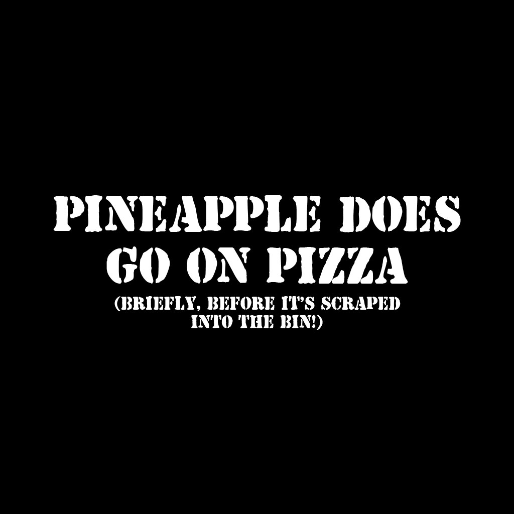 Pineapple does go on Pizza briefly before the bin T-Shirt